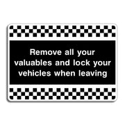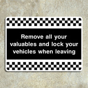 Remove All Your Valuables And Lock Your Vehicles When Leaving Sign