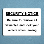 Security Notice Be Sure To Remove All Valuables And Lock Your Vehicle When Leaving Sign