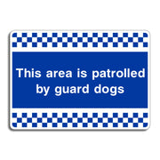 This Area Is Patrolled By Guard Dogs Signs are posted to warn people that security dogs are actively used to patrol the premises. The presence of guard dogs acts as a strong deterrent against trespassers, burglars, and vandals who might otherwise attempt to enter the area. All our safety signs are compliant with BS EN ISO 7010 where applicable.