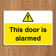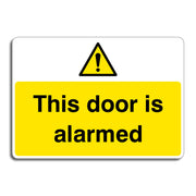 This Door Is Alarmed Signs are used to warn individuals that opening the door will trigger a security or emergency alarm. These signs discourage people from using the door unless absolutely necessary, such as during emergencies, helping to control access and maintain security. They are often placed on emergency exits to ensure the doors remain closed except during actual emergencies, which helps maintain building safety and security protocols. All our safety signs are compliant with BS EN ISO 7010 where applicable.