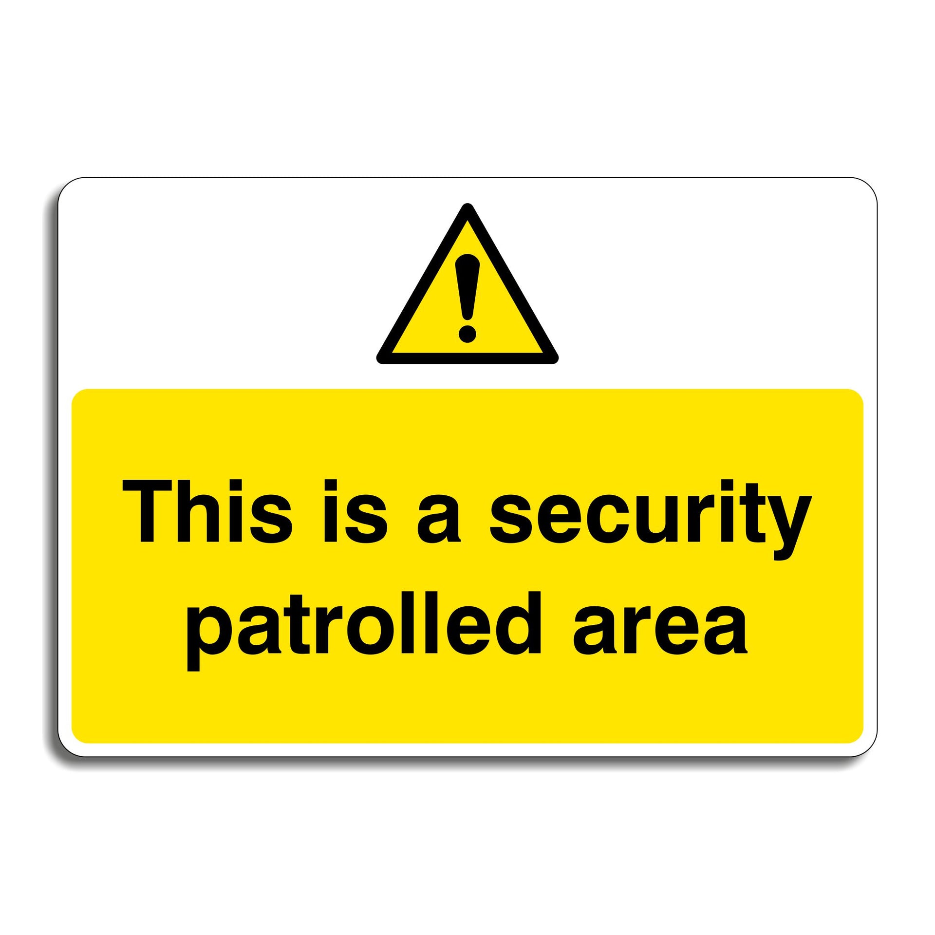 This Is a Security Patrolled Area Signs are used to inform people that the area is actively monitored by security personnel. They discourage criminal activities such as theft, vandalism, trespassing, or loitering by warning that security patrols are present and could intervene or report suspicious behaviour. These signs help create a safer environment by reassuring employees, residents, or visitors that trained personnel are monitoring the area and can respond to emergencies. All our safety signs are compliant with BS EN ISO 7010 where applicable.
