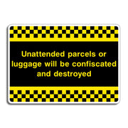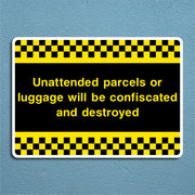 Unattended Parcels Or Luggage Will Be Confiscated And Destroyed Sign