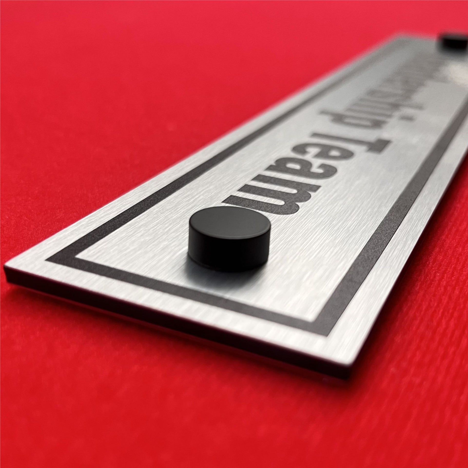 Our internally threaded matt black screw cover caps are a two part sign fixing being a brass collar with a stylish decorative cover cap. The brass collar is surface mounted with a countersunk screw with the satin silver metal cap screwed securely onto the brass collar.