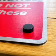 These matt black metal screw cover caps are a stylish fixing alternative for our range of brushed aluminium signs. Small door signs and sign panels up to A4 size are best suited to the 12mm diameter cover caps whilst A3 and larger signs suit the 15mm or 19mm size options. Please ensure that the cover caps will obscure any text or images on your sign before ordering.