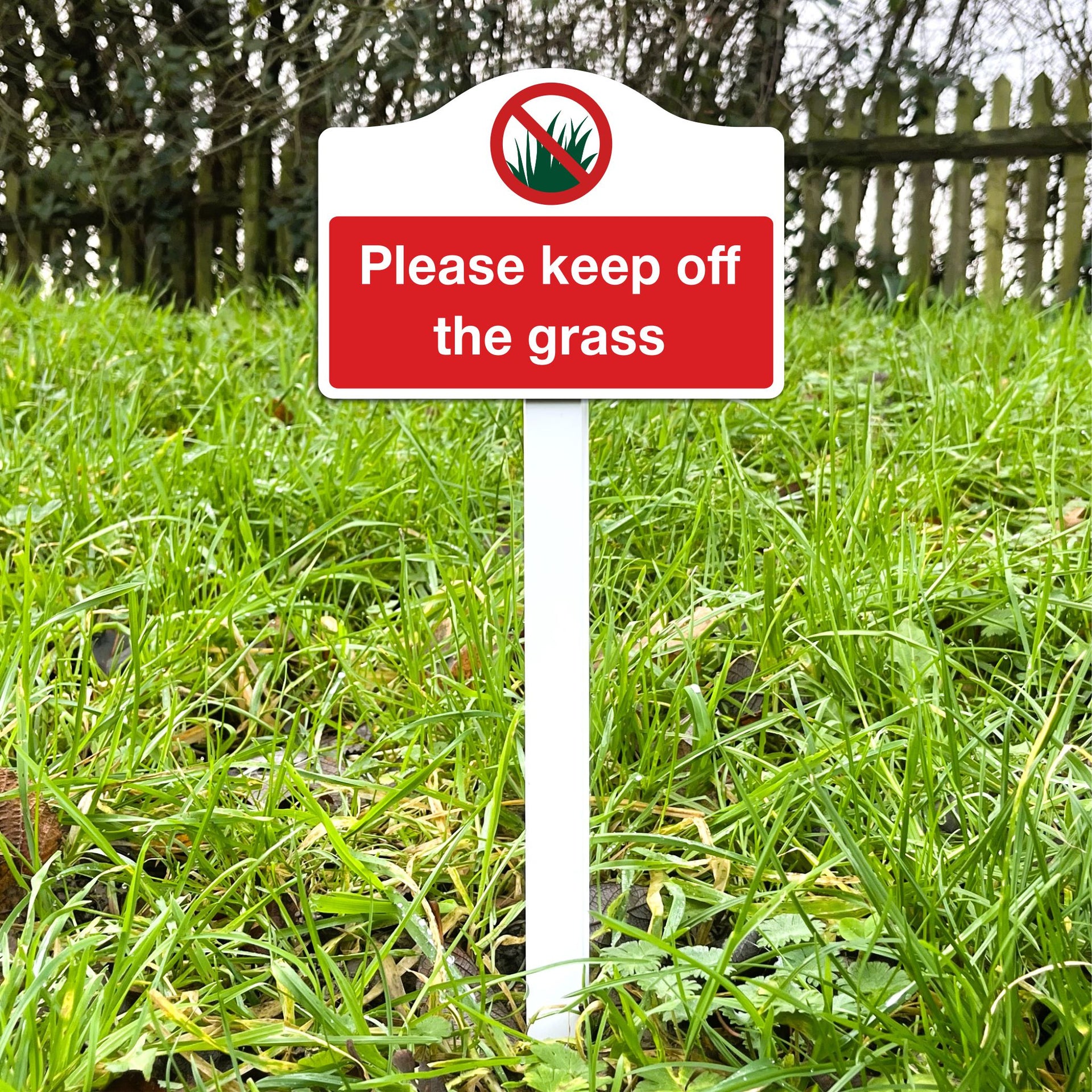 Please Keep Off The Grass Sign on Low Level Aluminium Stake/s