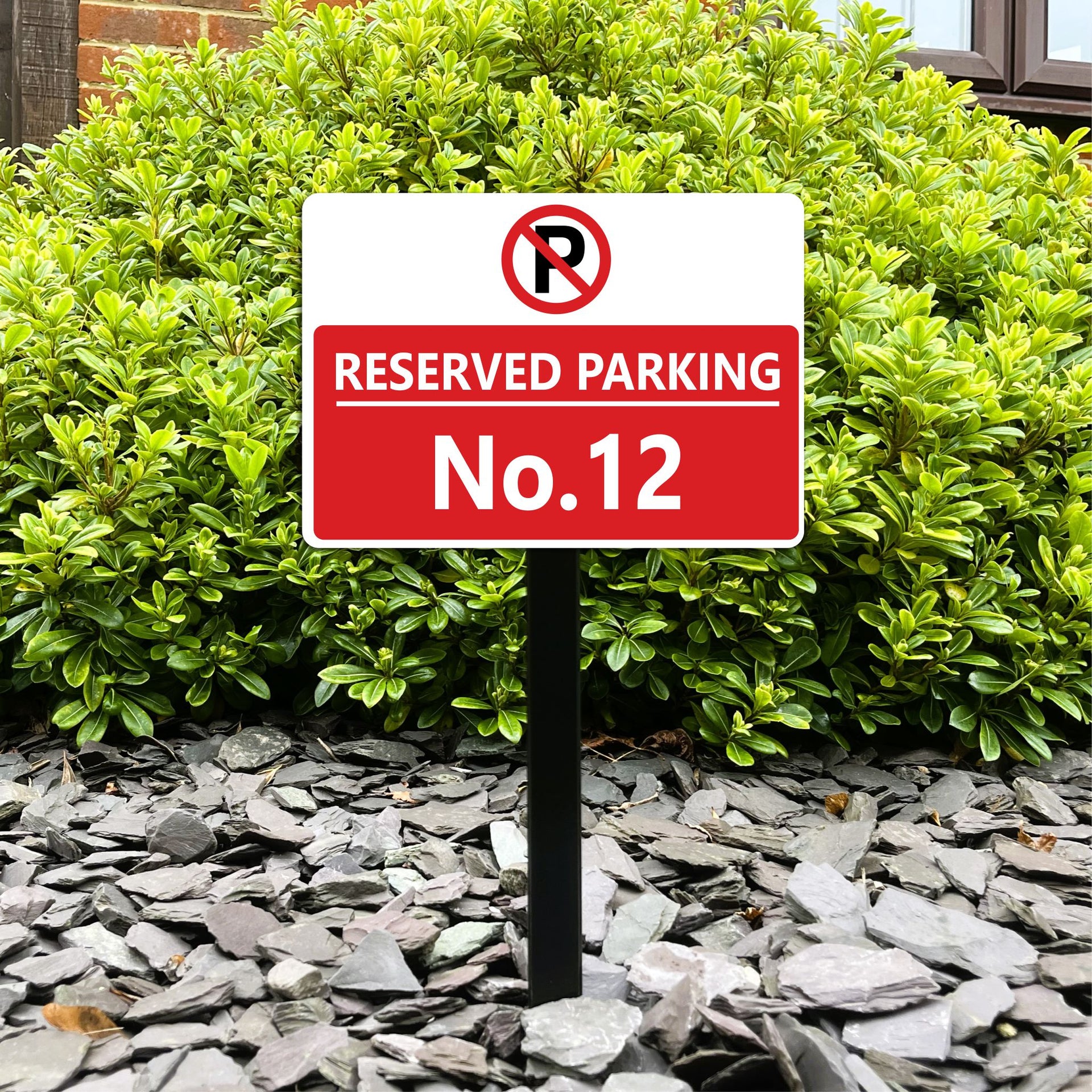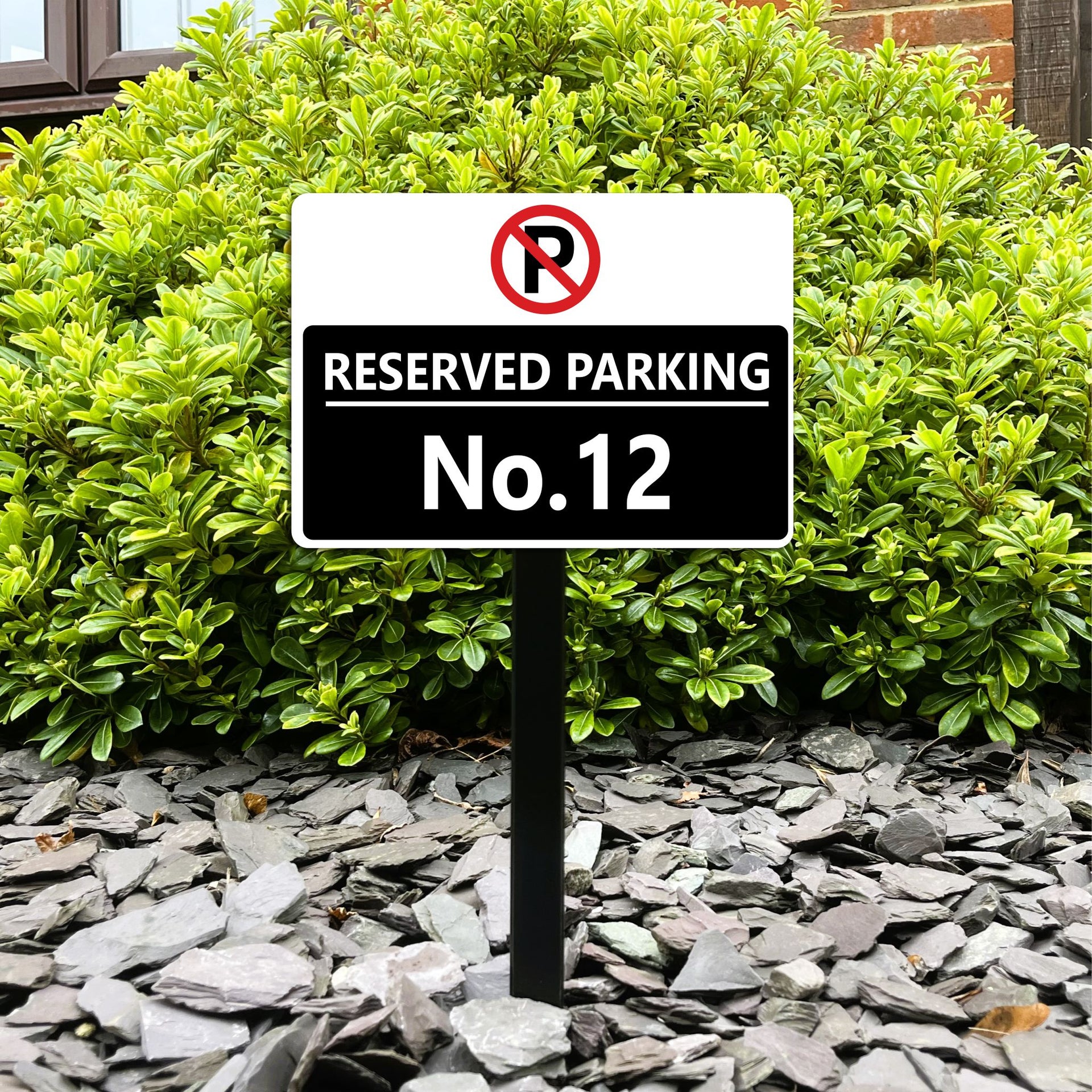 Our low level personalised reserved parking stake signs are available with a standard non-reflective white finish or a high quality white reflective background finish which is ideal for use on busy roads or in darker countryside or residential areas where the signs will be more visible when light such as vehicle headlights or torches are shone onto the sign. Intended for low level use these signs are supplied with non-rusting powder coated aluminium stake/s that are supplied ready to be fitted to the rear of the sign panel making them quick and easy to install.