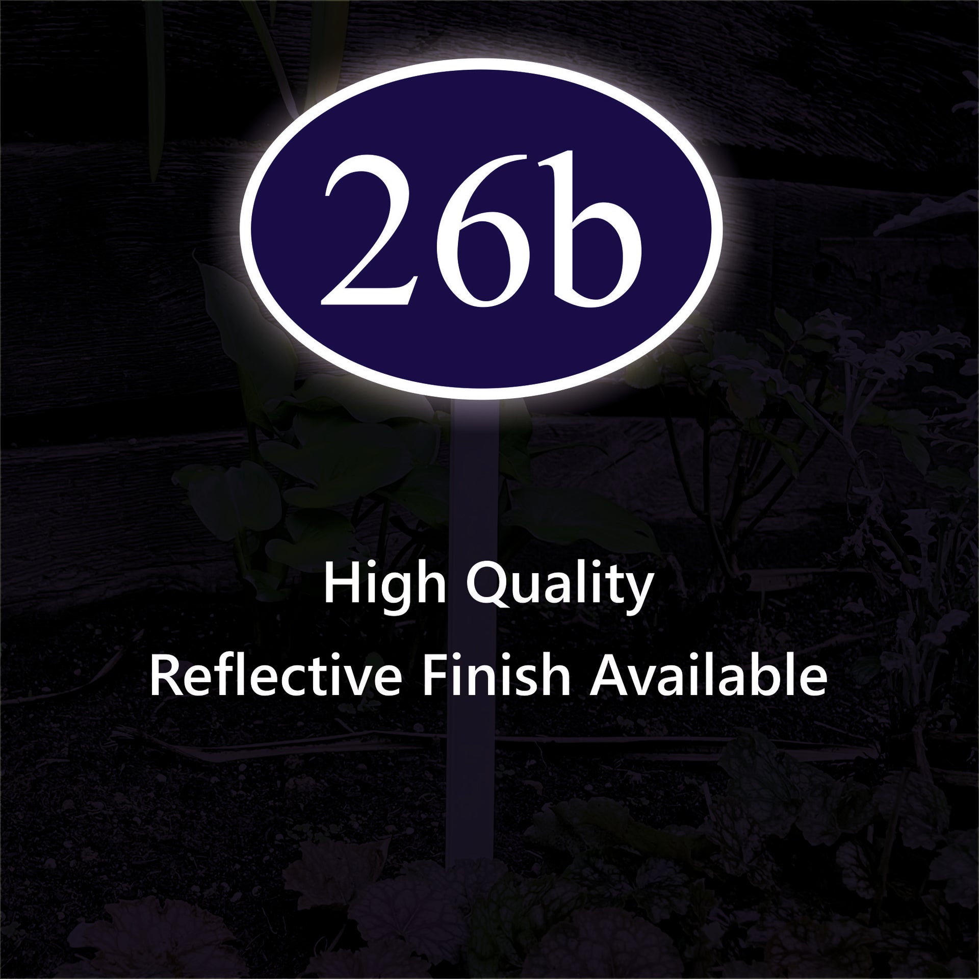 Personalised Reflective House Number Sign on Low Level Aluminium Stake/s