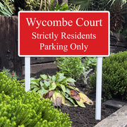 Personalised Reflective No Parking Sign on Low Level Aluminium Stakes