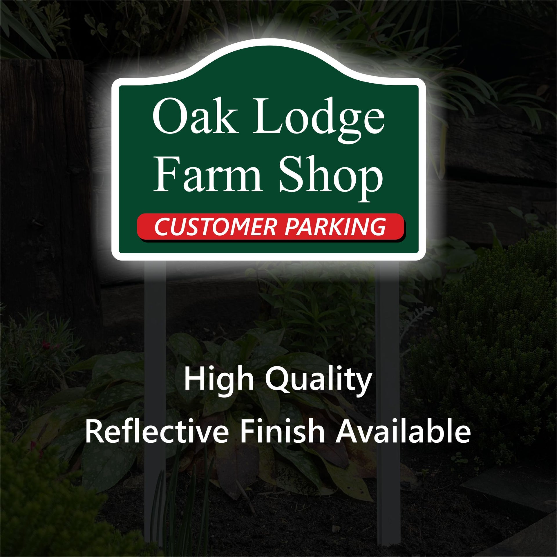 - Cost-Effective: Personalised Reflective Sign complete with powder coated aluminium stake/s means you do not need to buy any additional sign posts or fittings.