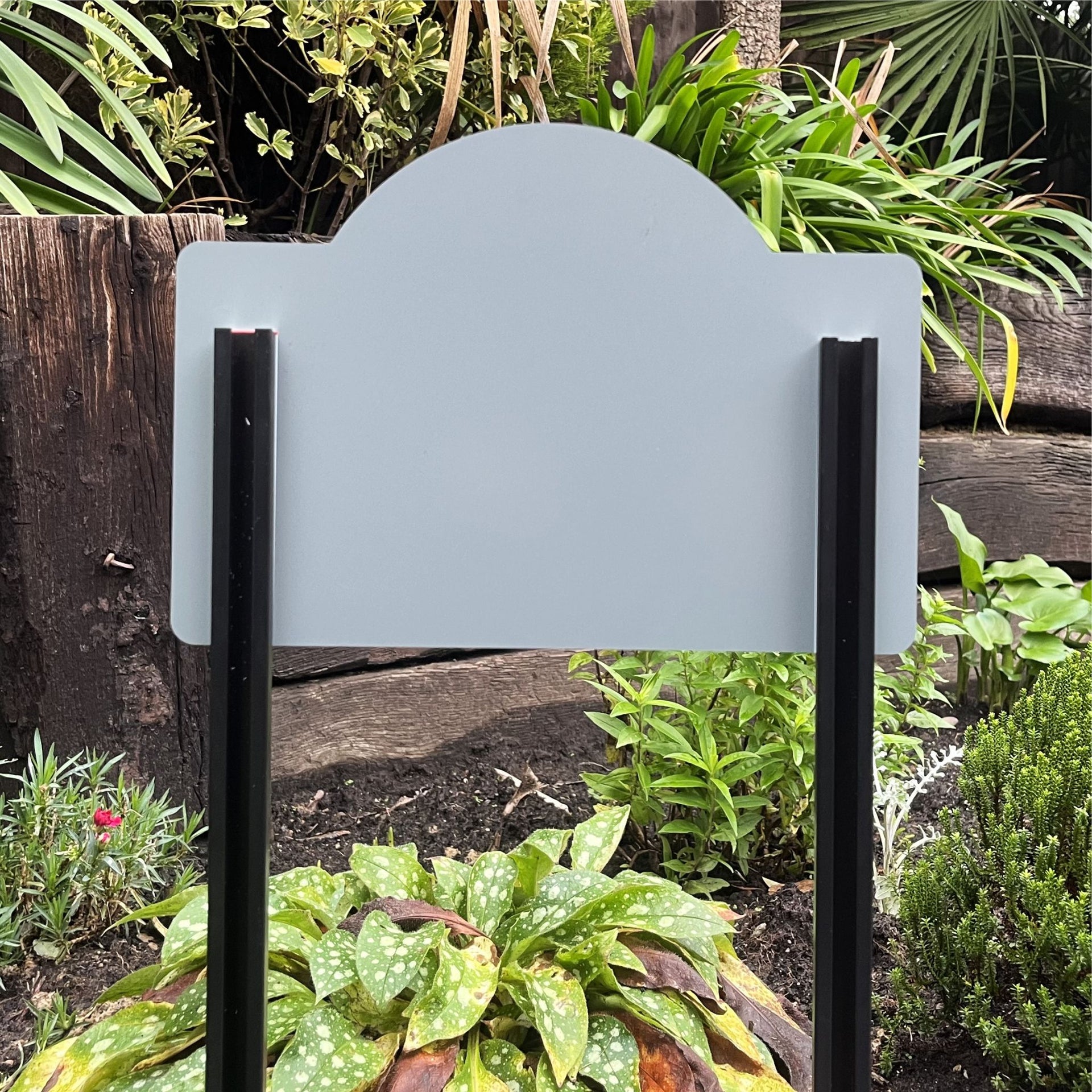 - Choose from Four Popular Sizes: Available in 4 sign sizes and 8 background colours which are all available with either black or white powder coated stake/s to suit your requirements.