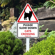 Slow Down Cats Crossing Sign on Low Level Aluminium Stake/s