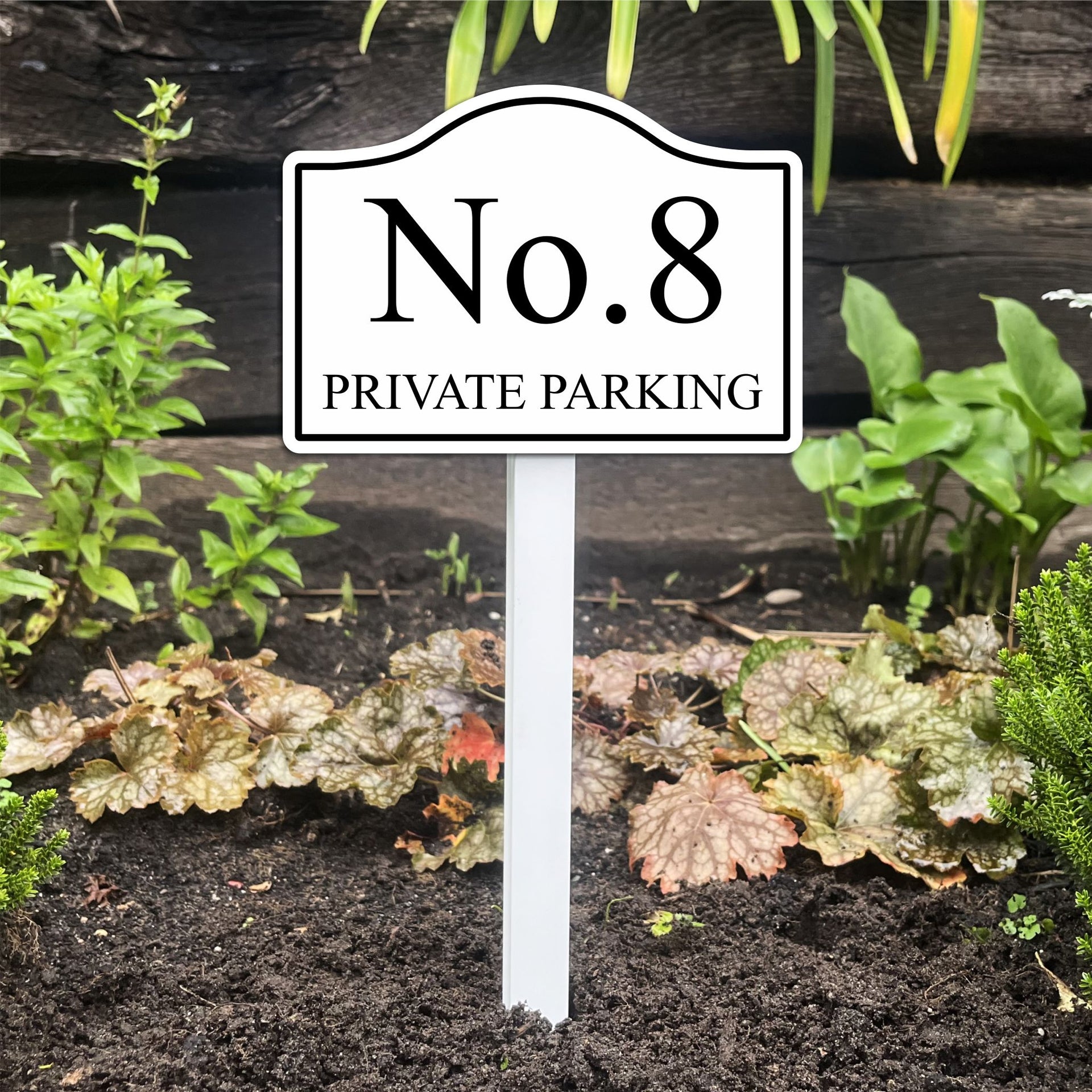 - Cost-Effective: Personalised Private Parking Sign sign complete with powder coated aluminium stake/s means you do not need to buy any additional sign posts or fittings.