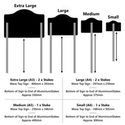 - Choose from Four Popular Sizes: Available in four sign sizes and 8 background colours which are all available with either black or white powder coated stake/s to suit your requirements.