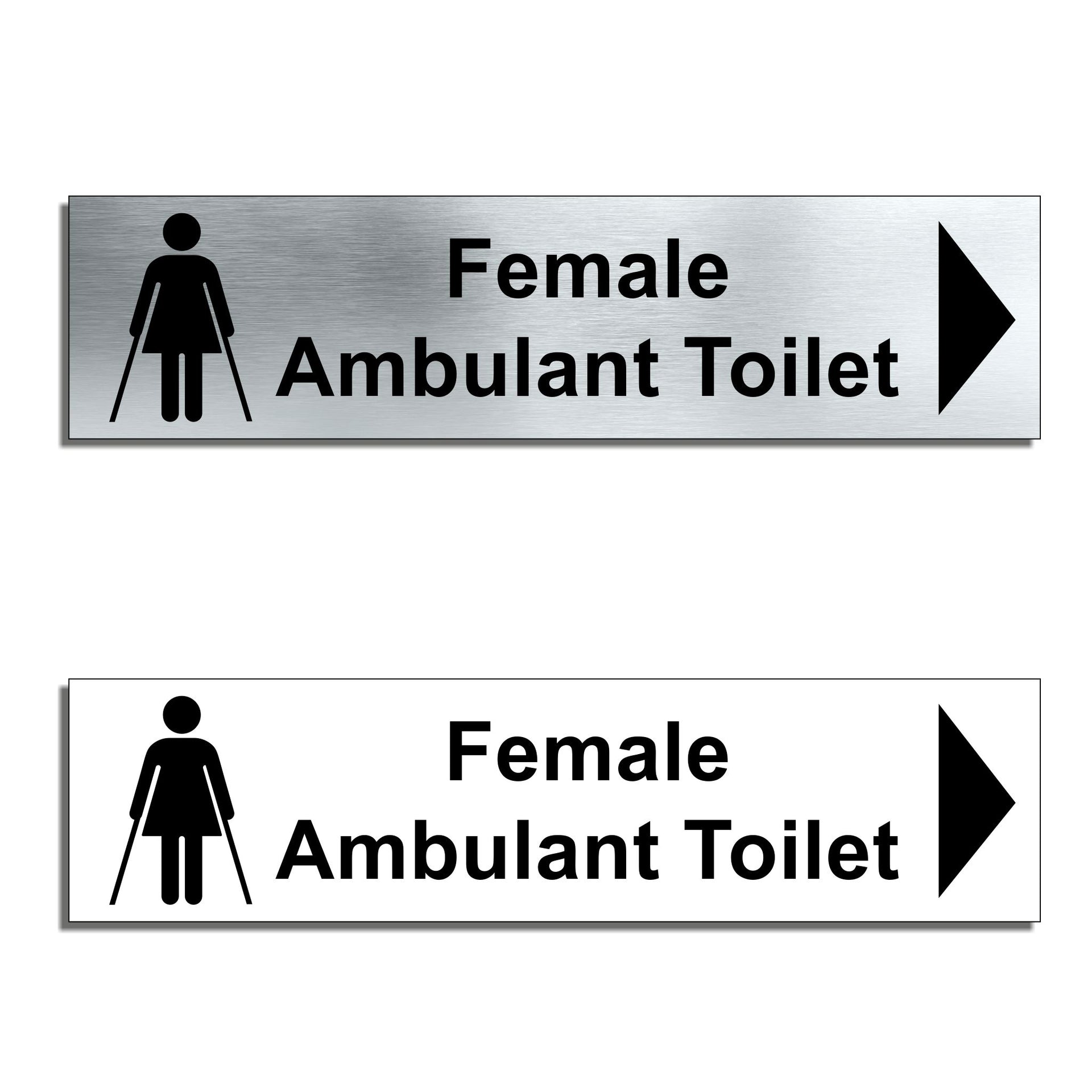 Enhance the look of your doors with our brushed aluminium Female Ambulant Toilet Door Signs. This sign has a right pointing directional arrow to help guide users. Brushed silver aluminum door signs are known for their contemporary appeal, giving a high-end look that is both sleek as well as being practical. The distinctive brushed aluminium texture creates a modern aesthetic that is perfect for businesses or organisations aiming to convey a sense of style and professionalism. The textured metallic finish adds a touch of luxury, making brushed aluminum door signs a popular choice for any location. Manufactured by us here in the UK using a high quality 3mm brushed silver aluminium composite sheet each door sign is suitable for either internal or external use. Our door signs are precision cut to size and shape using one of our flat bed CNC routers and is then digitally printed directly to the surface using the very latest UV printing technology. This door sign is also available in a 3mm bright white aluminium composite finish. These door signs are supplied with self adhesive pads to allow for easy installation. We also offer a range of stylish screw fixings that are designed to compliment the finish of each sign. Due to the large selection of different sign designs to avoid drill holes in the actual image or text area we do not supply these signs with any pre-drilled holes.
