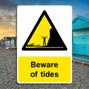 Beware Of Tides Signs are designed to alert beachgoers, swimmers, and coastal visitors to the changing water levels caused by tidal movements. Their primary purpose is to inform individuals about the potential dangers of rising or falling tides, which can quickly alter beach conditions, expose or cover hazards, and affect safe access to certain areas. All our safety signs are compliant with BS EN ISO 7010 where applicable.