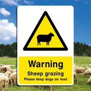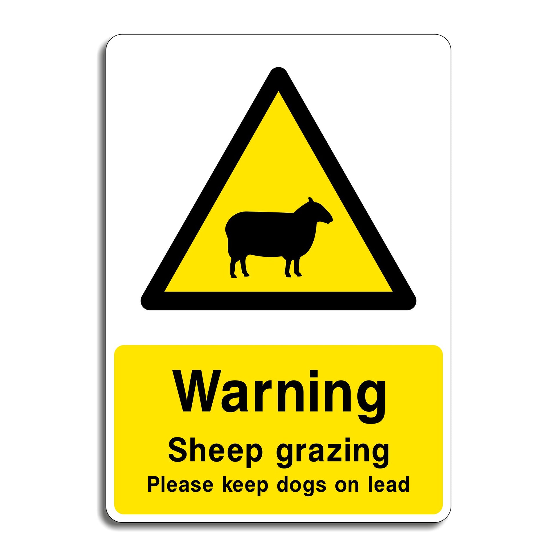 Warning Sheep Grazing Please Keep Dogs on Lead signs are to inform and caution the public especially dog owners about the presence of sheep in the area and to promote responsible behavior. Sheep are easily frightened by dogs, even friendly ones. Stress from being chased can cause injury, miscarriage in pregnant ewes, or even death. The sign reminds dog owners to prevent their pets from harassing the sheep. All our safety signs are compliant with BS EN ISO 7010 where applicable.