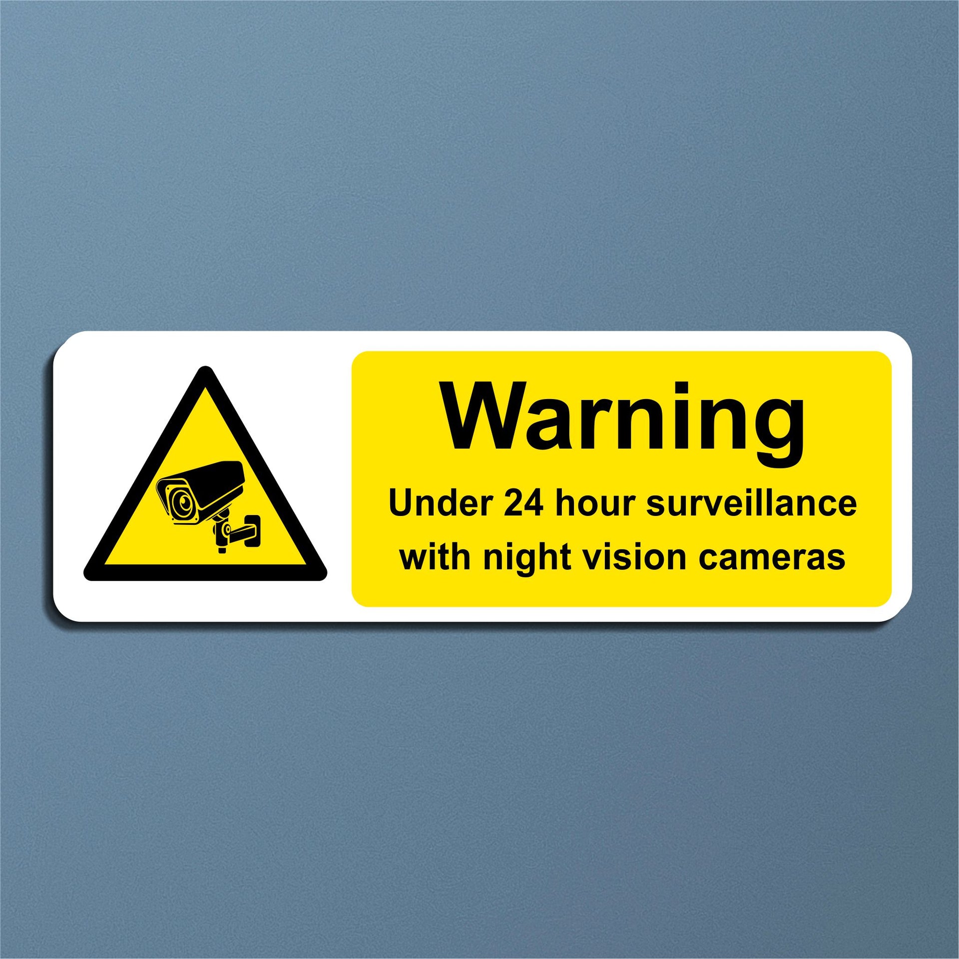 Warning Under 24 Hour Surveillance with Night Vision Cameras Signs are used to alert, deter, and legally inform individuals that the area is continuously monitored, including during nighttime hours. The mention of night vision specifically warns that surveillance continues even in complete darkness, reducing the belief that nighttime offers cover. All our safety signs are compliant with BS EN ISO 7010 where applicable.