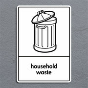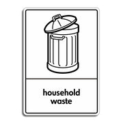 Household Waste Recycling Signs are used to clearly identify areas or containers designated for the disposal of general household waste that can be recycled, such as paper, cardboard, plastics, metals, and glass. These signs guide residents and visitors to correctly separate recyclable materials from non-recyclable waste, helping to reduce landfill use, conserve natural resources, and support efficient recycling operations. All our safety signs are compliant with BS EN ISO 7010 where applicable.