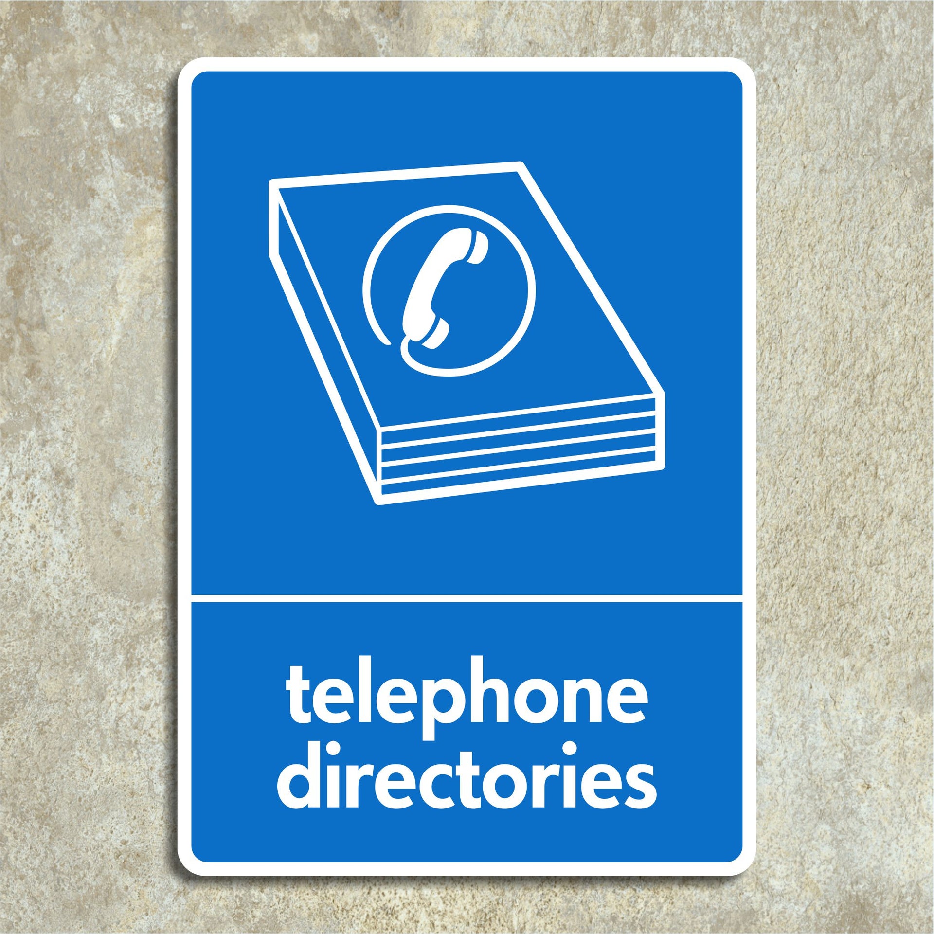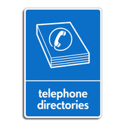 Telephone Directories Recycling Signs are designed to guide and encourage the proper disposal and recycling of outdated or unused phone books. These signs are typically placed near designated recycling bins or collection points and serve to inform the public that telephone directories, which are made primarily of paper, can and should be recycled rather than thrown away. All our safety signs are compliant with BS EN ISO 7010 where applicable.