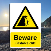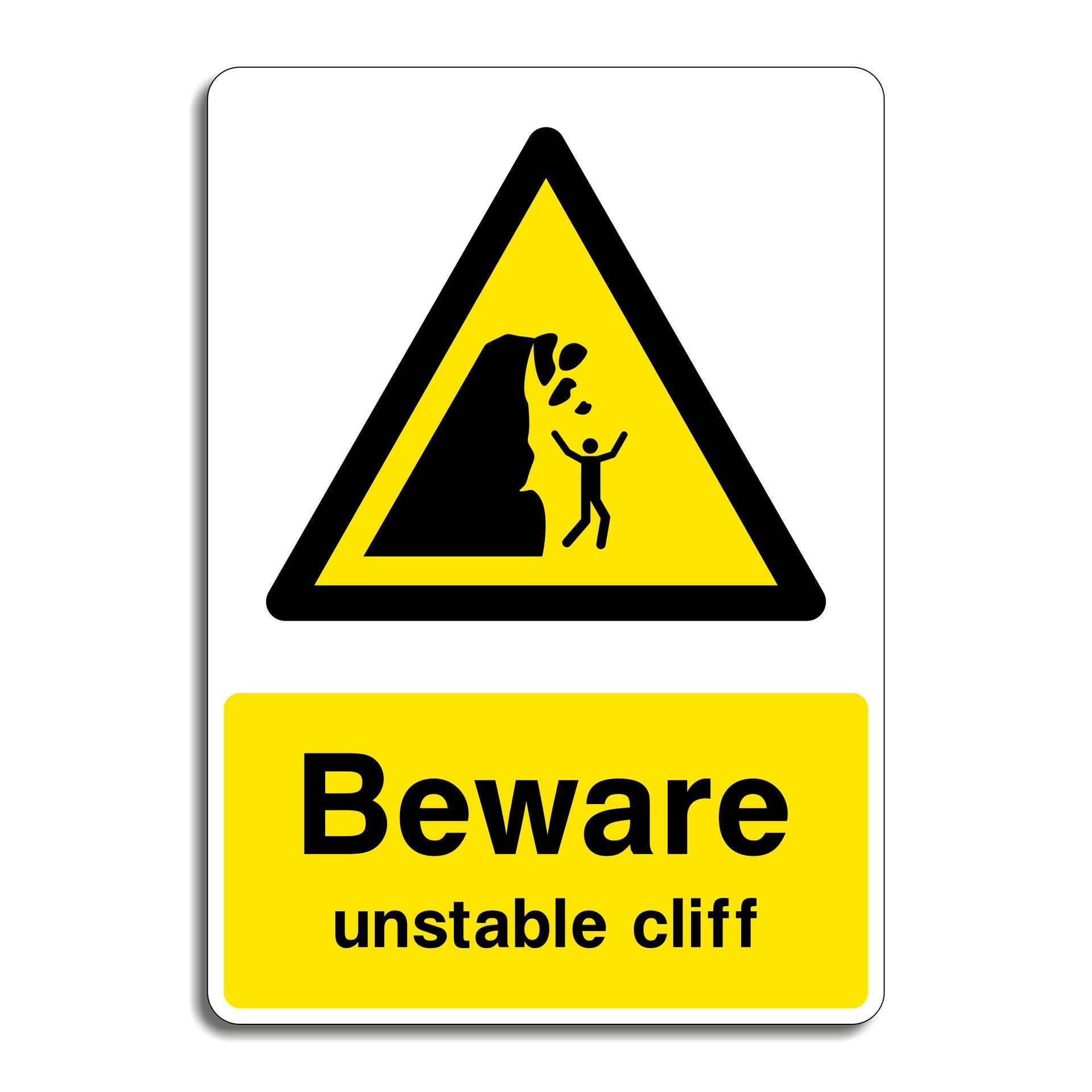 Beware Unstable Cliff Signs are intended to alert hikers, climbers, and visitors to the presence of cliffs or slopes that are prone to erosion, rockfalls, or sudden collapses. Their primary purpose is to prevent accidents by warning people to stay away from the edges and avoid activities that could trigger instability. All our safety signs are compliant with BS EN ISO 7010 where applicable.