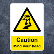 Caution Mind Your Head Signs are used to warn people about low ceilings, overhead obstructions, or objects that could cause a head injury if not noticed in time. These signs are commonly placed in workplaces, stairwells, basements, construction sites, warehouses, and vehicles where head clearance is limited. All our safety signs are compliant with BS EN ISO 7010 where applicable.
