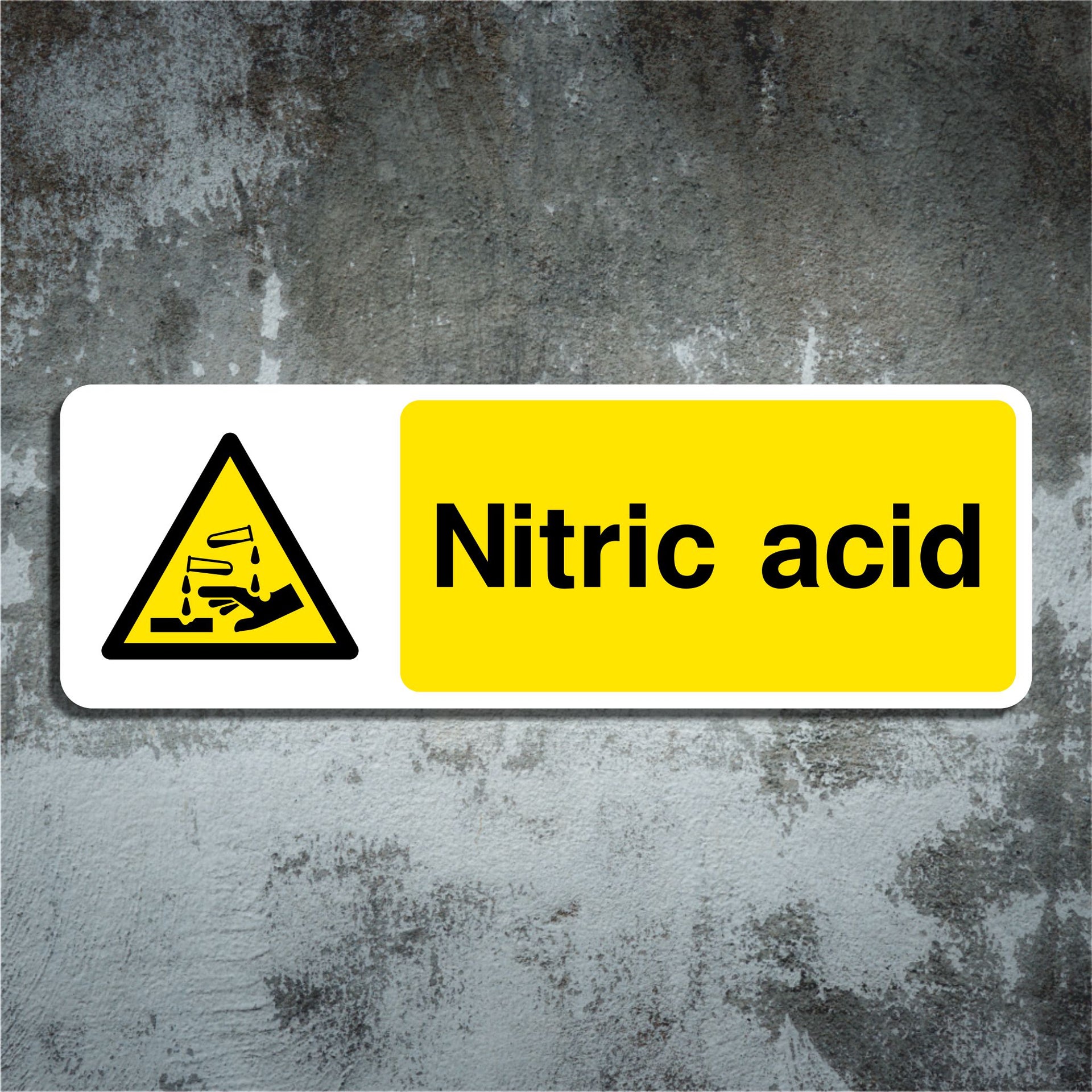 Nitric Acid Signs are safety warnings used to identify areas where nitric acid (HNO₃) is stored, used, or handled. Nitric acid is a highly corrosive and reactive chemical commonly used in laboratories, manufacturing, and industrial processes. They encourage the use of personal protective equipment (PPE) like gloves, safety goggles, face shields, and protective clothing when handling or near corrosive materials. All our safety signs are compliant with BS EN ISO 7010 where applicable.